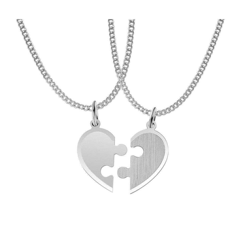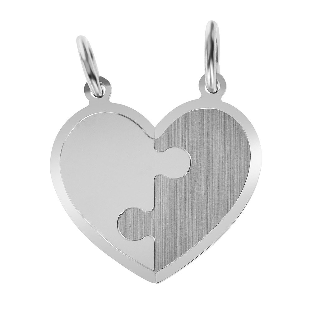 925/- Echt Silber Freundschaftsanhänger „Hila“, Puzzleteile in Herzform, rhodiniert