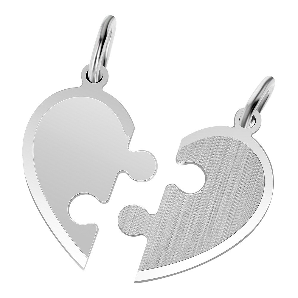 Erhalten Sie mit unserem besonderen Freundschaftsanhänger ein besonderes Anhänger-Duo in Form von Puzzleteilen in Herzform oder zwei Herzhälften aus hochwertigem 925er Sterlingsilber. Er kann als Ganzes an zwei Ösen und an einer passenden Kette getragen werden oder aufgeteilt für zwei besondere Personen, als Zeichen einer innigen Verbundenheit. Dieser Anhänger geht über den üblichen Schmuck hinaus - er ist ein Symbol für gemeinsame Erinnerungen und unvergängliche Bindungen. Die Herzform, mattiert in der Mitte und von glänzenden Akzenten umgeben, erzeugt einen faszinierenden Kontrast. Die Größe von 19 x 19 x 1 mm verleiht dem Anhänger eine markante Präsenz. Die Herzform repräsentiert nicht nur Liebe, sondern auch tiefe Freundschaft. Die Kombination aus mattierter und polierter Oberfläche verleiht dem Herzanhänger eine einzigartige Tiefe und Betonung. Die Möglichkeit zur Gravur auf beiden Seiten eröffnet die Chance, eine persönliche Botschaft hinzuzufügen, die für immer im Herzen getragen werden kann. Die Verwendung des hochwertigen Silbers sorgt dafür, dass diese Schmuckstücke Ihre Schönheit bewahren und von höchster Qualität sind. Mit diesem Schmuckstück wird der Freundschaft oder der Partnerschaft eine unvergessliche Bedeutung verliehen und die Verbundenheit zueinander auf eine besondere Weise repräsentiert.